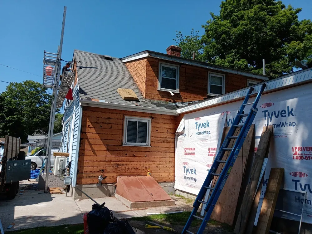 This Warren home got a complete exterior refresh thanks to MBC Roofing. We replaced aging soffit, siding, and fascia with durable, low-maintenance materials, giving the house a fresh, modern look while protecting it from the elements. The result is a beautiful, functional exterior designed to last for years.